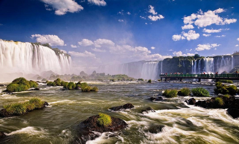 2,7 km e atravessando a fronteira com a Argentina, as cataratas são formadas por centenas de cascatas, entre