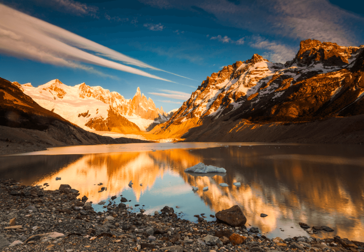 aproveitamos para fotografá-lo com um ângulo de visão mais aberto, observando como ele sobe do lago até o topo das montanhas. Tempo para o almoço e retorno ao hotel e restante da tarde livre para passear pela cidade El Calafate. Noite livre.