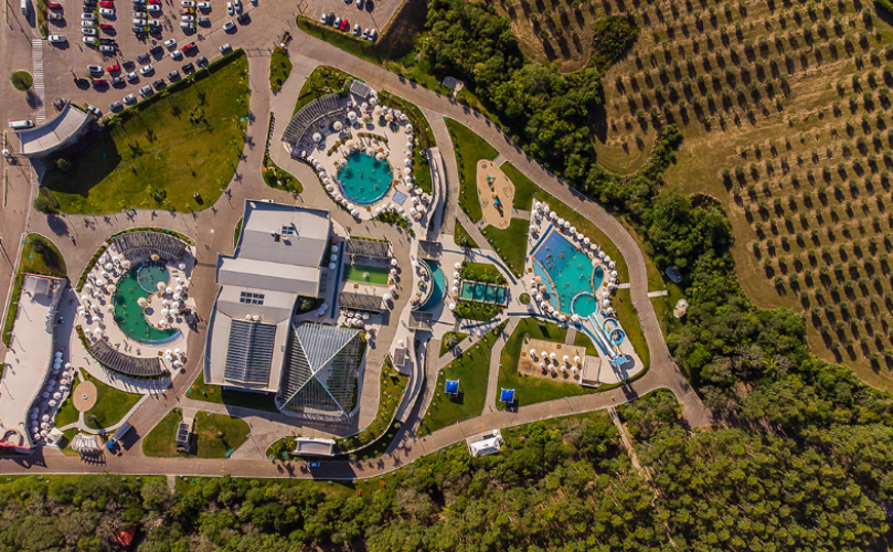 e o local se destaca por ser o único parque termal do Brasil com águas naturalmente salgadas.